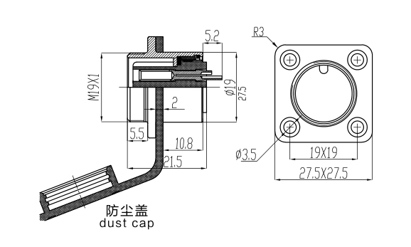 絕緣體 | 電木 | 溫度范圍 | -20℃ ~ +85℃ |