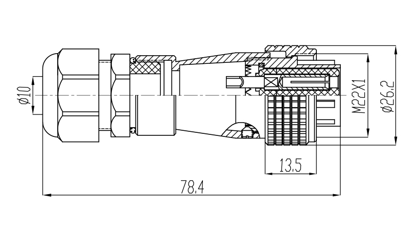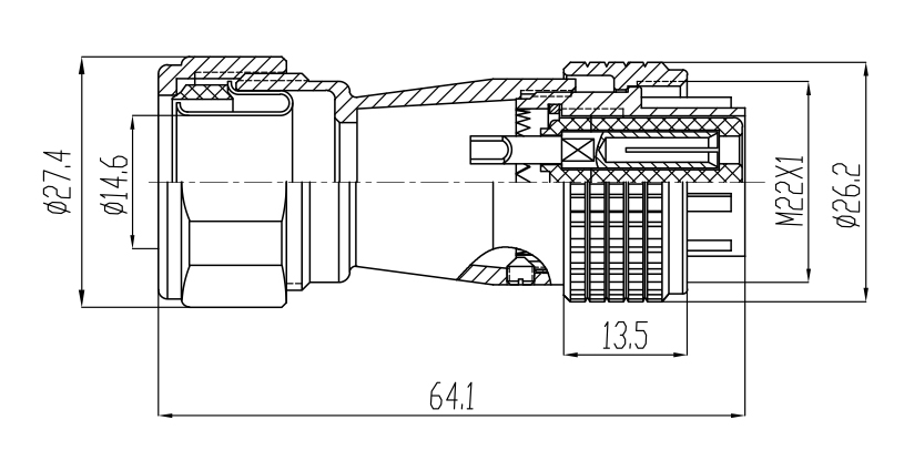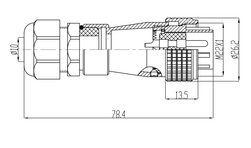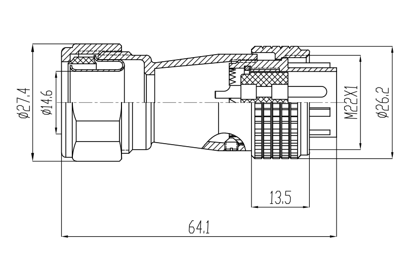 接觸體材料 | 銅(鍍銀/ 金) | 電纜直徑 | φ6 ~ ≤ φ12.5mm |