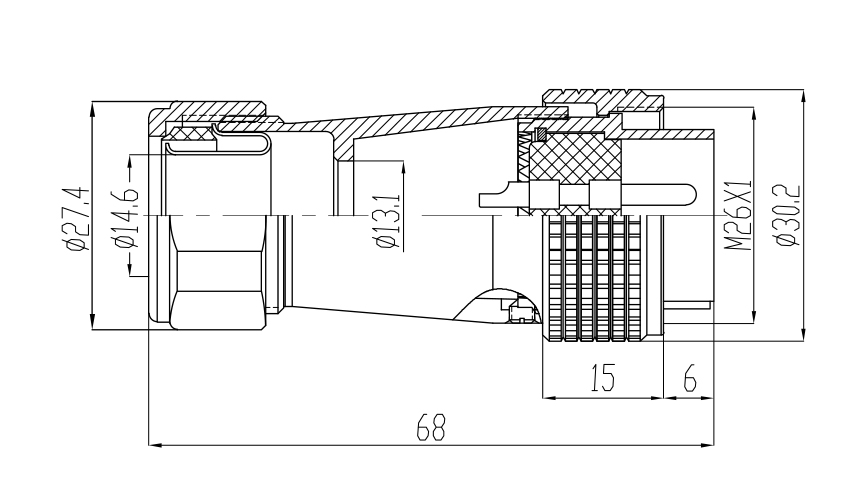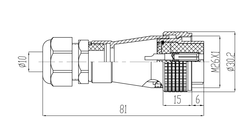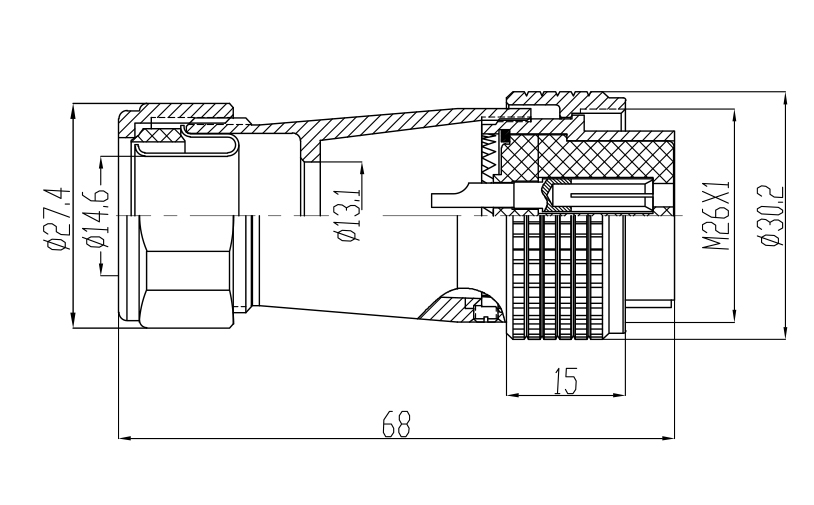 接觸體材料 | 銅(鍍銀/ 金) | 電纜直徑 | φ7 ~ ≤ φ13mm |