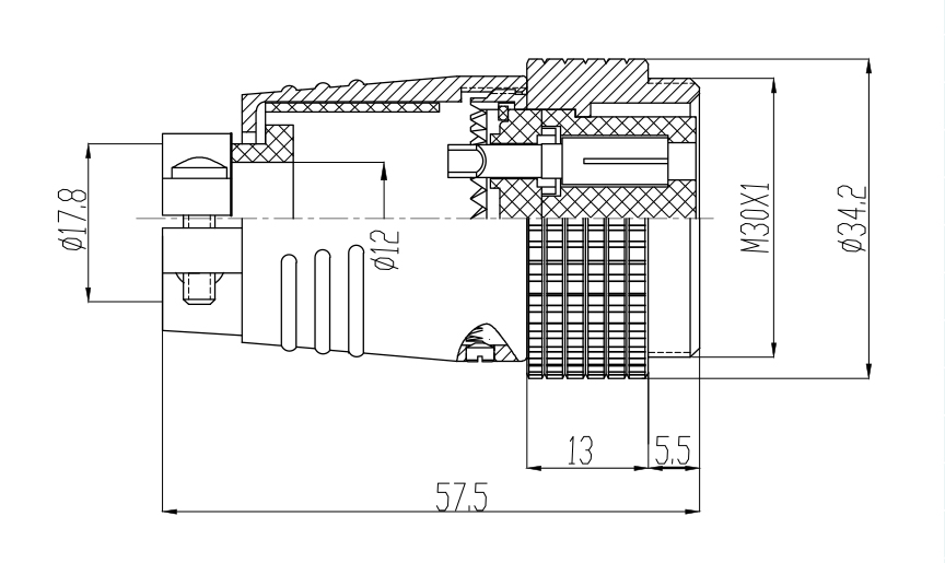 接觸體材料 | 銅(鍍銀/ 金) | 電纜直徑 | ≤ φ12mm ~ ≤ φ17.8mm |