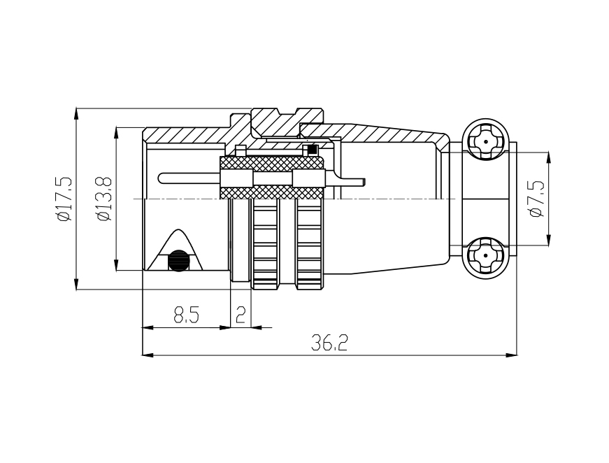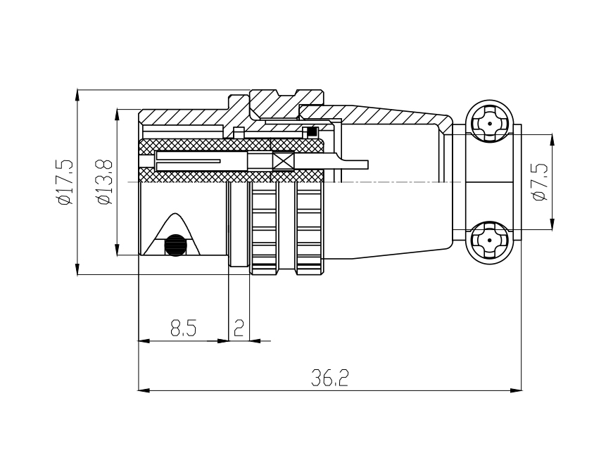 接觸體材料 | 銅(鍍銀/ 金) | 電纜直徑 | ≤ φ7.5mm ~ ≤ φ8.3mm |