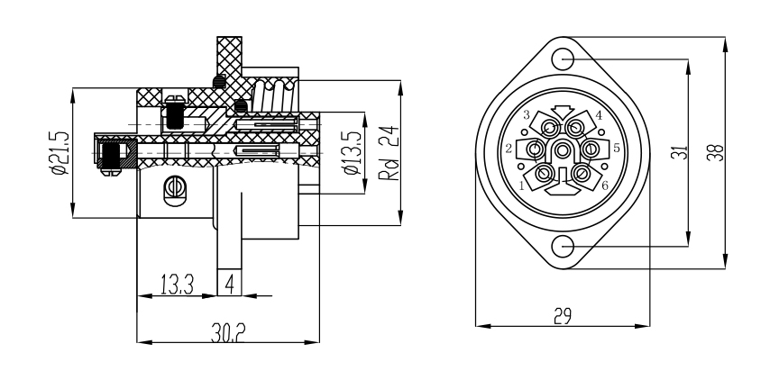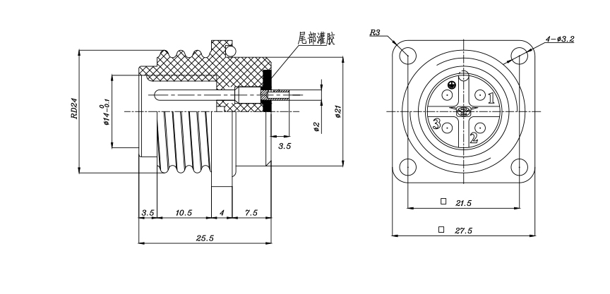 RD24 防水方形公插座